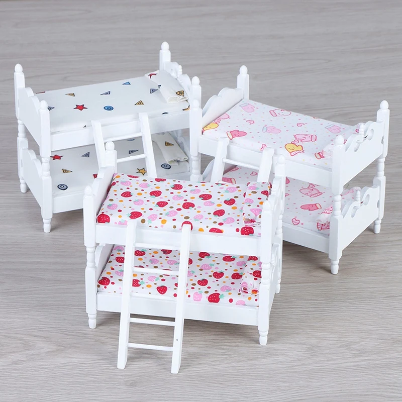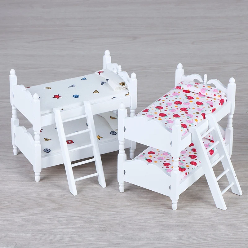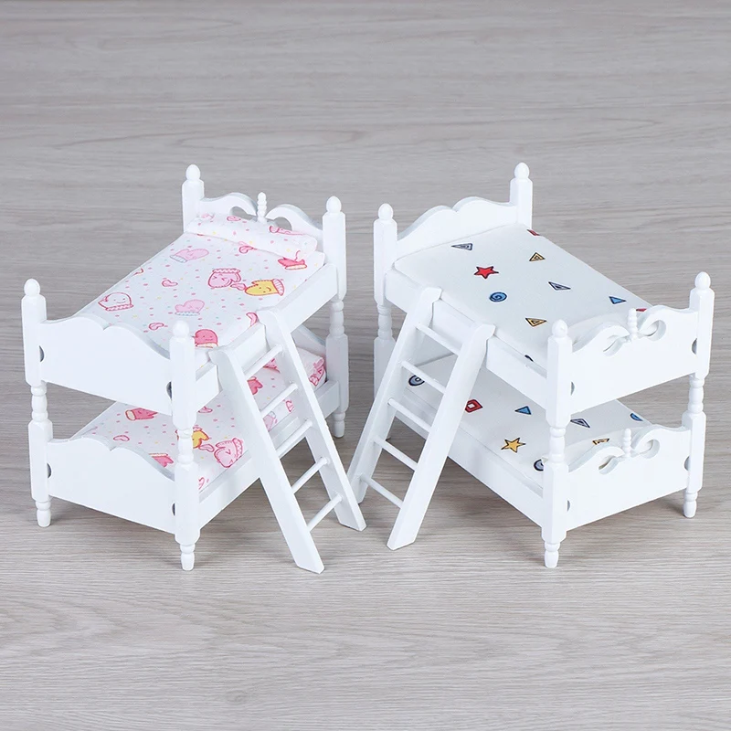 HOT SALE 1:12 Handmade Toy House Children'S Play House Bedroom Bunk Bed Dolls Furniture Accessories Children